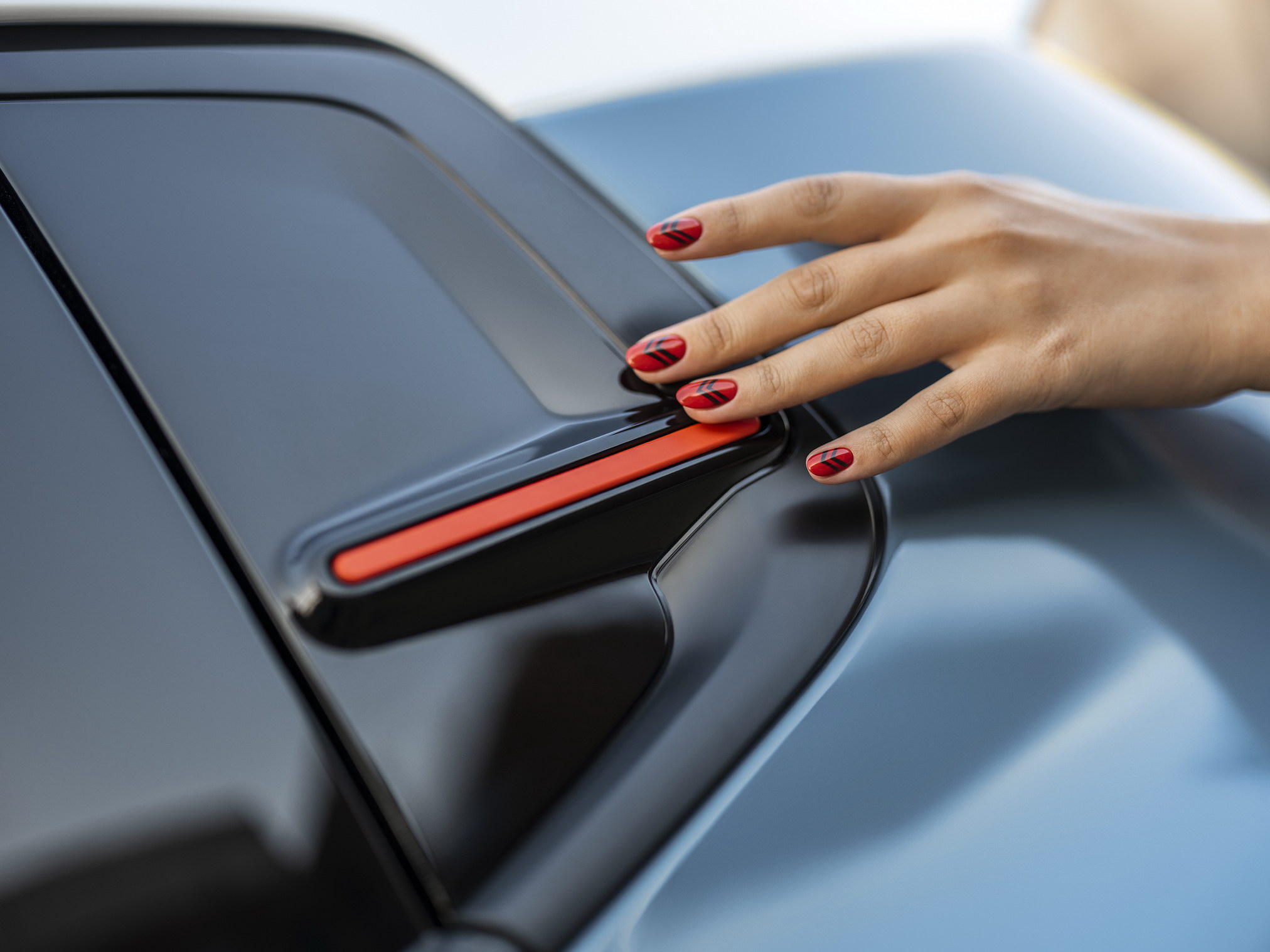 The short, high and horizontal bonnet features technically sculpted surfaces, which catch the light and contrast with the more vertical front profile, feeding into a larger, more upright windscreen and to give the car more volume and accentuate the feeling of protection.