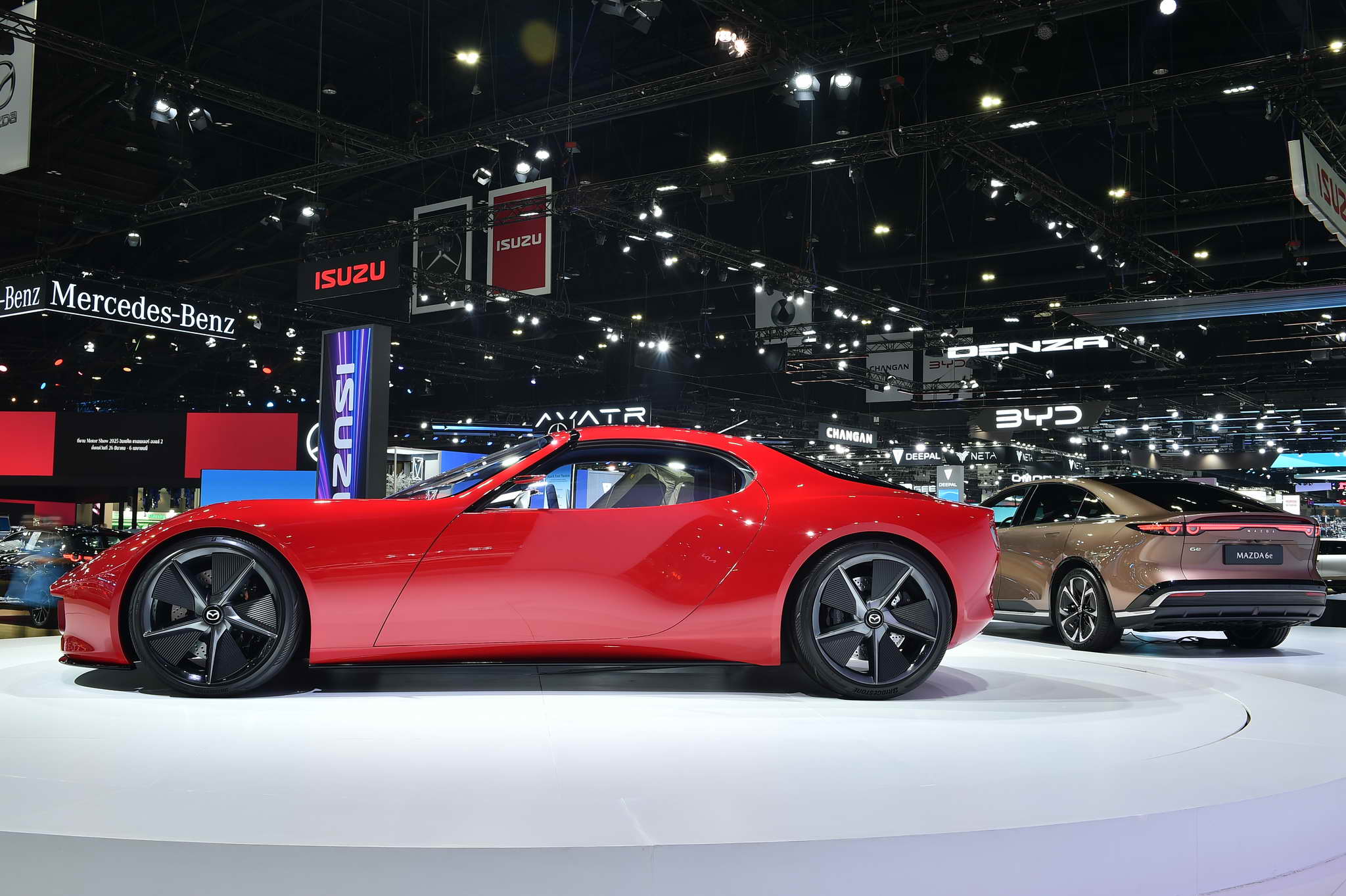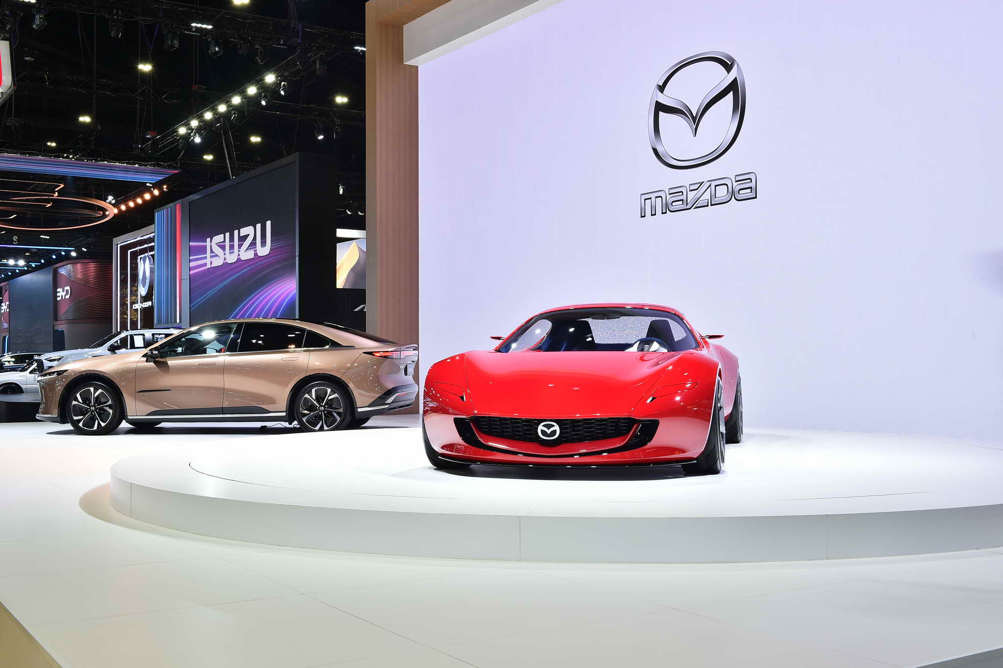 • MAZDA ICONIC SP: A concept of a sports compact car that is powered by electrification, utilizing Mazda’s iconic two-rotor rotary engine to generate electrification for the battery. This vehicle can burn various fuels, including hydrogen and various clean energy forms, particularly those derived from natural resources such as microalgae and etc. The concept car still preserves Mazda’s brand identity by maintaining a low center of gravity, it is lightweight, and features a 50:50 weight distribution, all crafted with the Kodo Design philosophy. The vehicle also embodies the Jinba-Ittai philosophy, offering a unified driving experience of human-centricity to ensure an enjoyable driving experience while aligning with the era of electrification. This concept car is currently under development to revive the legendary rotary engine sports car and introduce diverse alternative energy solutions to customers, staying true to Mazda’s commitment to delivering driving happiness.