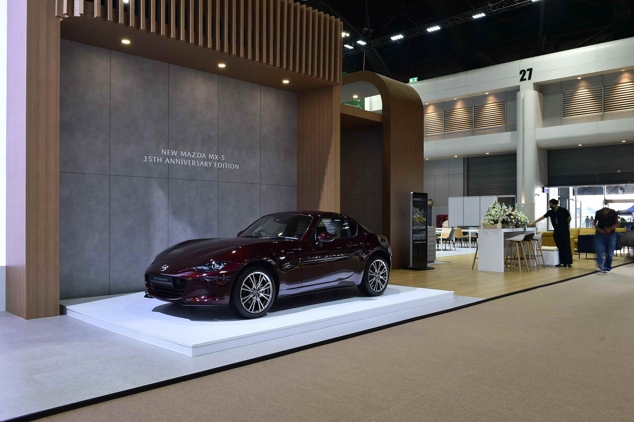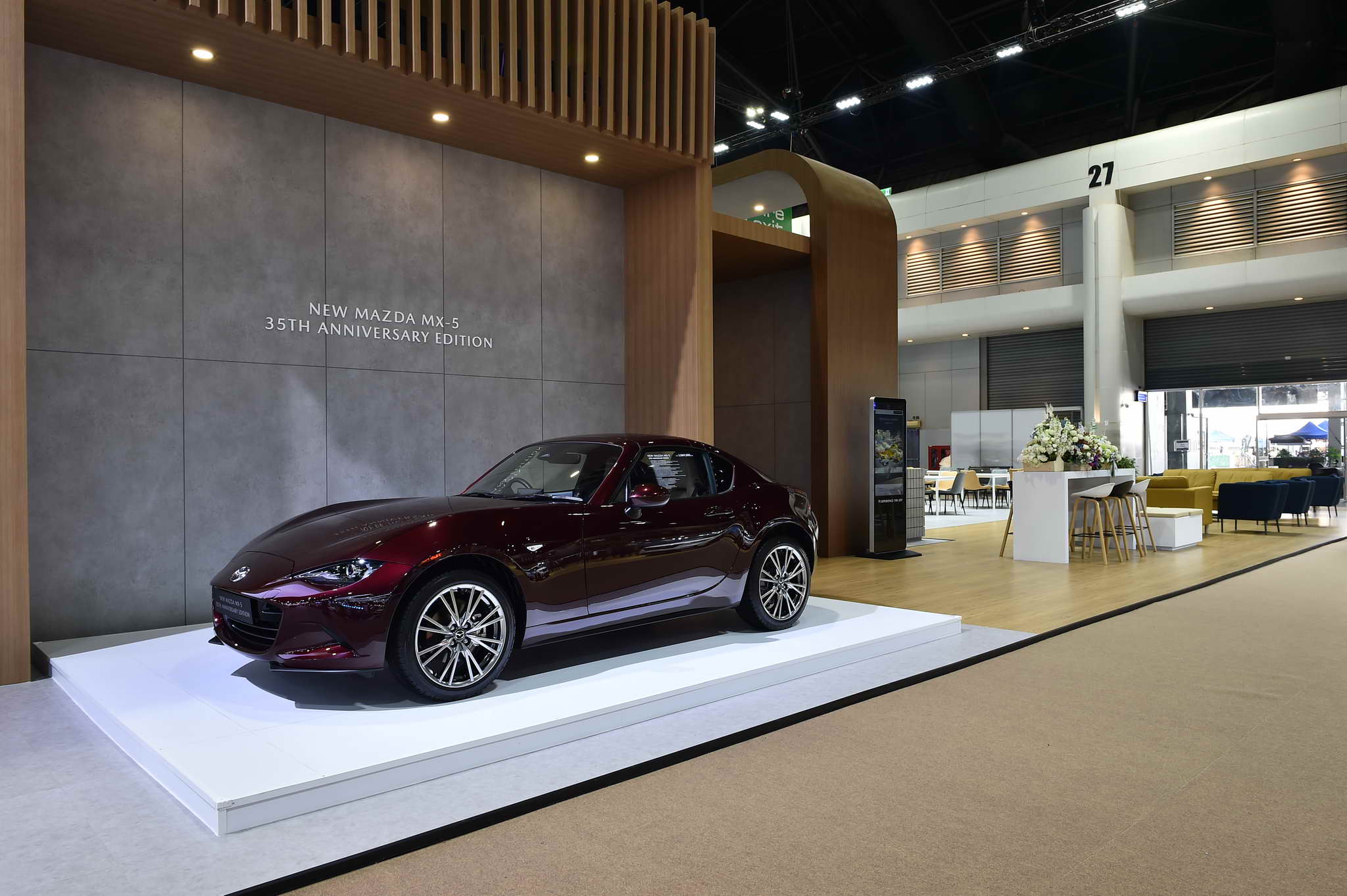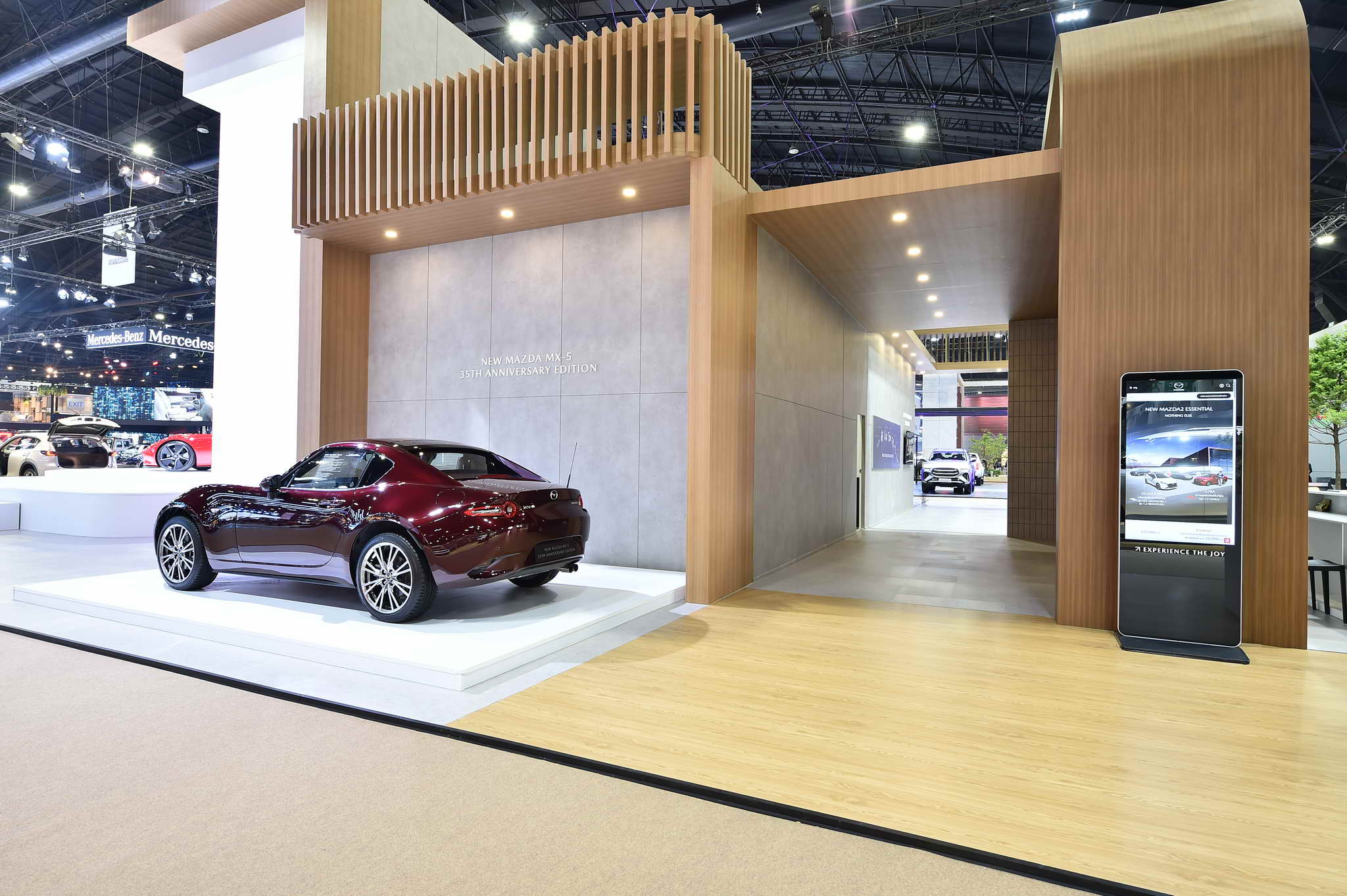 In addition, Mazda also showcases the latest model, the iconic New Mazda MX-5 35th Anniversary Edition, to celebrate the 35th Anniversary of the MX-5’s first launch. This special edition has been created to commemorate the milestone and is on display for fans in Thailand to admire and own. It comes with unique design details that set it apart from the regular model, highlighting its special nature in every aspect, including the exclusive Artisan Red Premium exterior color, the 35th Anniversary Edition logo on the headrest and floor mats and carpet and a 35th Anniversary badge with a serial number on the side of the body, signifying its limited edition status. It also features special Sports Tan leather seats, a power-retractable hardtop, body-colored side mirrors, and 17-inch Bright alloy wheels that convey a premium sporty image and uniqueness. This limited edition model is available for purchase at a price of 3,069,000 Baht.